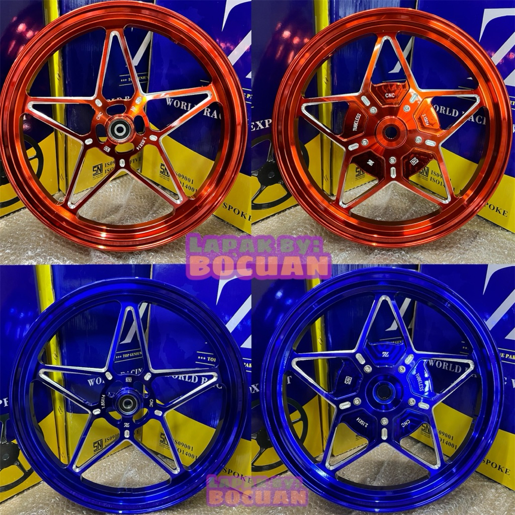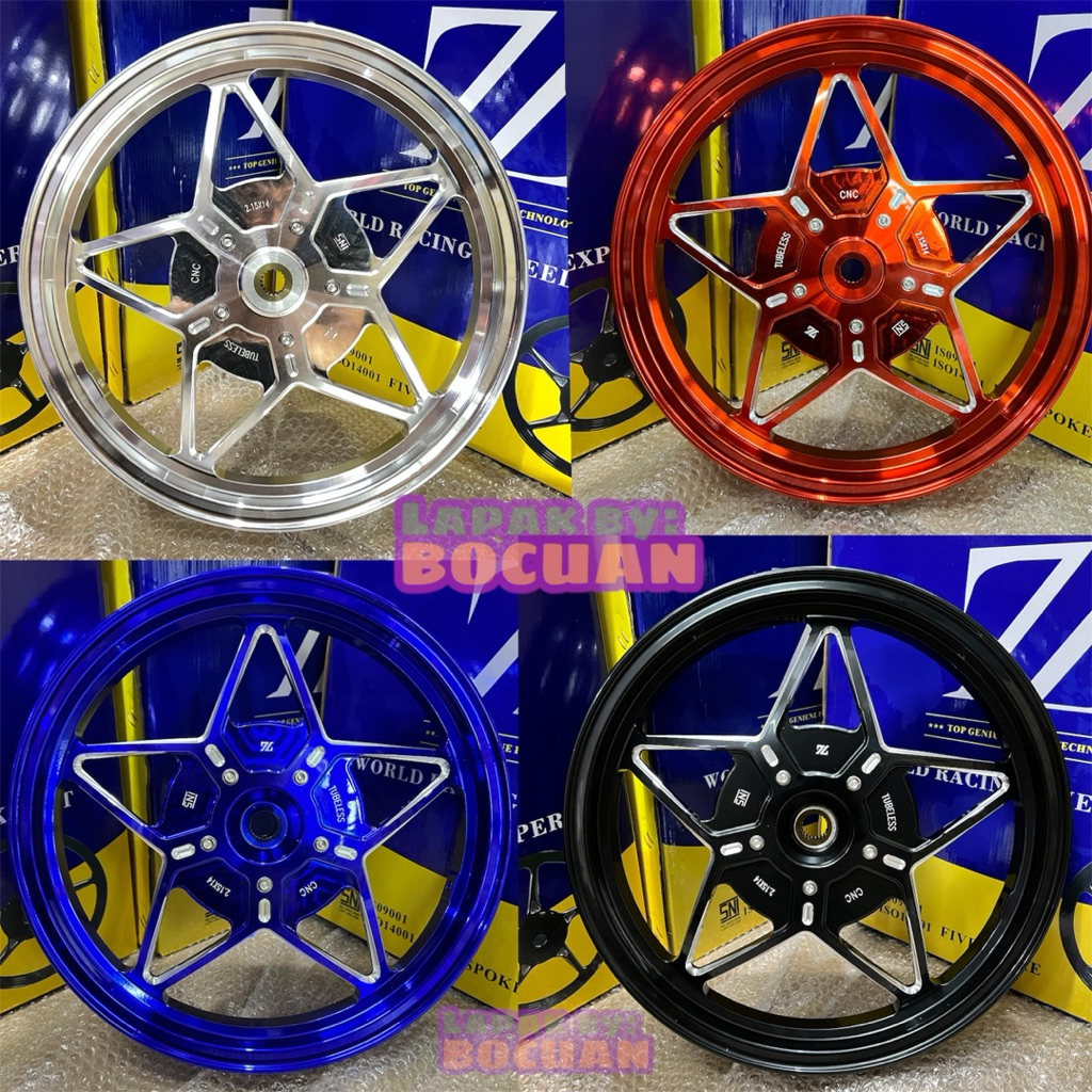 VELG ZL CNC FIVE STAR ELITE YAMAHA HONDA RING 14 VARIO 110 125 150 MIO SMILE BEAT NEW SCOOPY GENIO SCOOPY SPACY BIRU HITAM ORANGE SILVER CANDY TONE VELG CNC ANODIZED PELEK RODA MOTOR PALANG 5 BINTANG