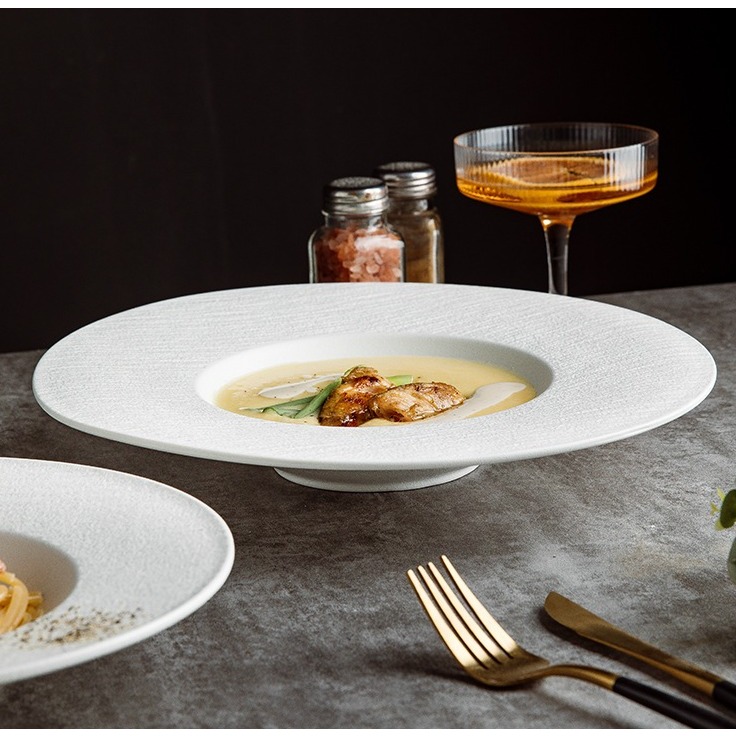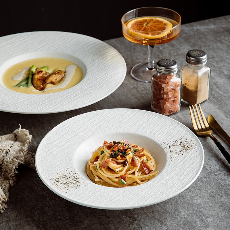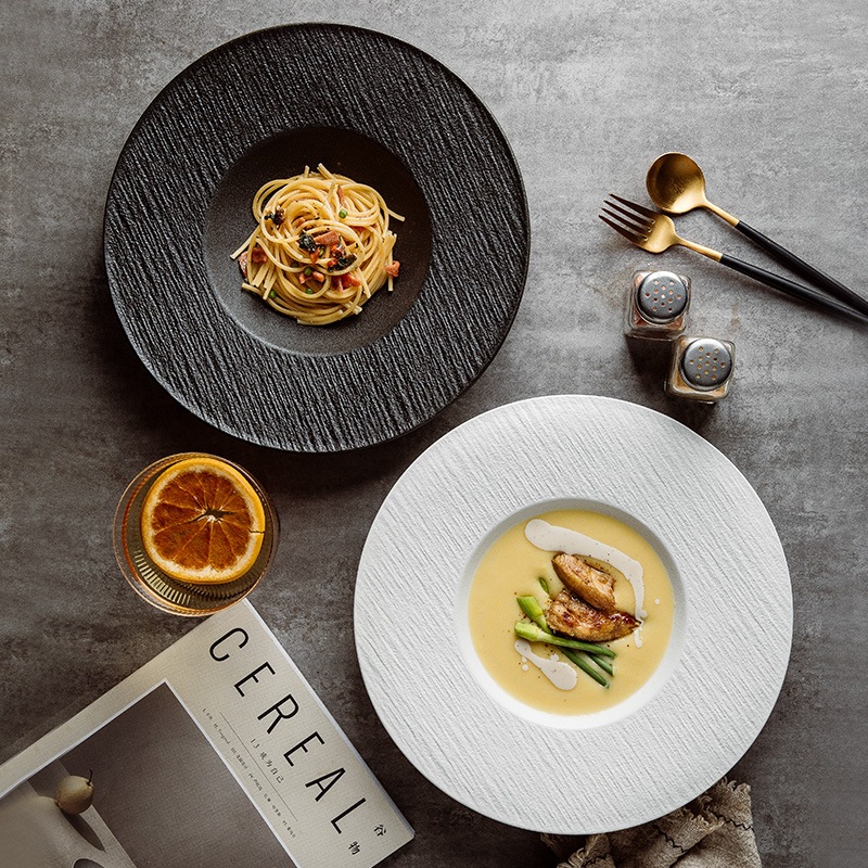 DAPOORAN Flying Pasta Bowl / Piring Pasta Putih hitam / Piring pasta keramik / Piring pasta aesthetic