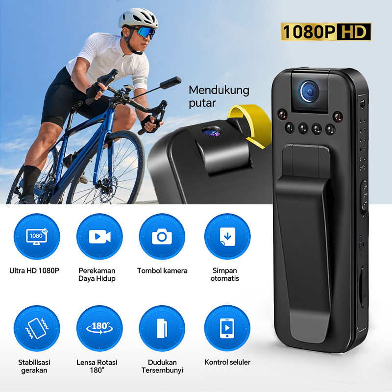 MISENI Mini Kamera Cctv HD 1920P 180° Mini Camcorder Dash Cam Police Body Motorcycle Bike Motion Camera Desain Magnetik