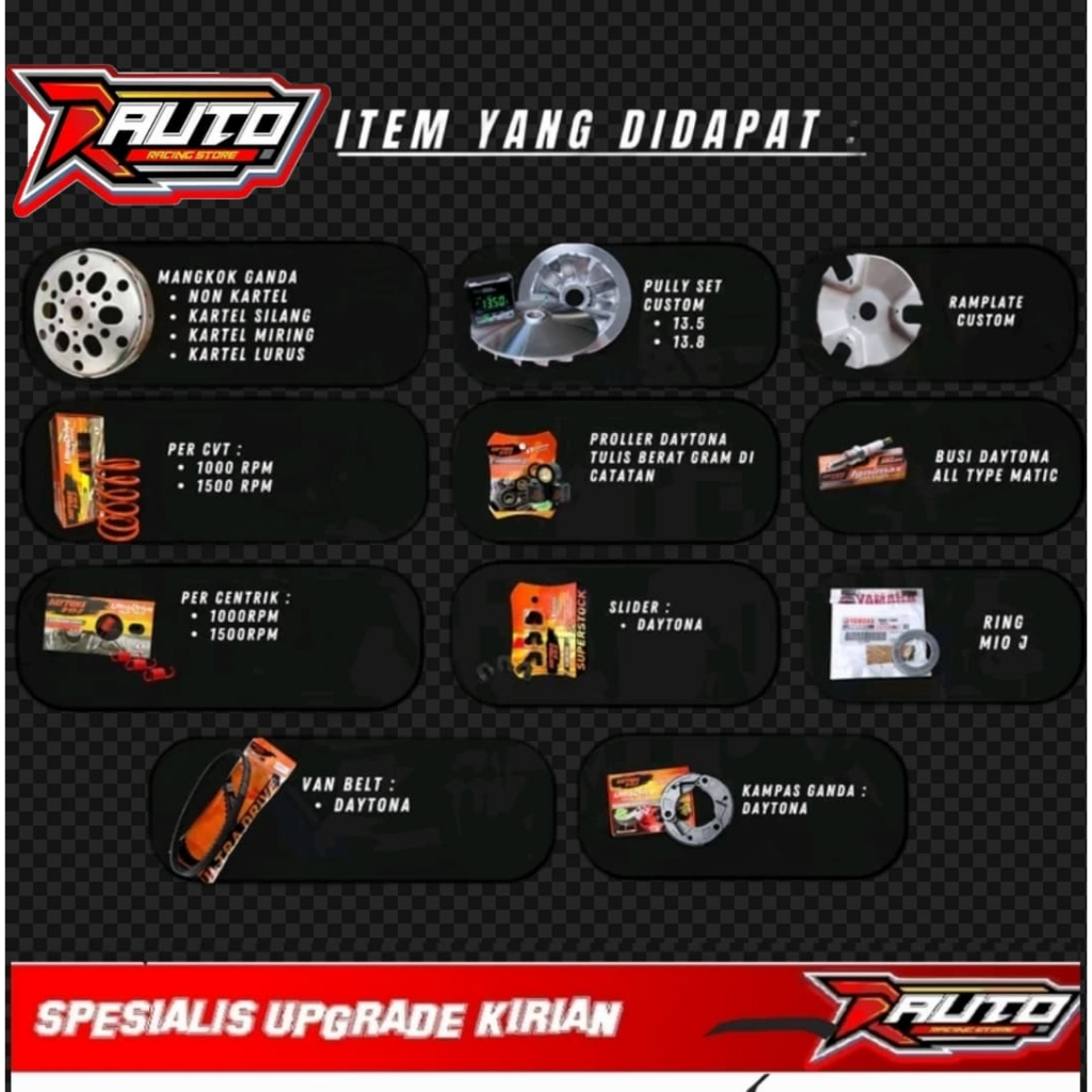 PAKET FULL UPGRADE DAYTONA CVT MIO SPORTY-FINO KARBU MIO J-FINO 115-SOUL GT 115 MIO M3-SOUL GT 125 KIRIAN MOTORCYCLE