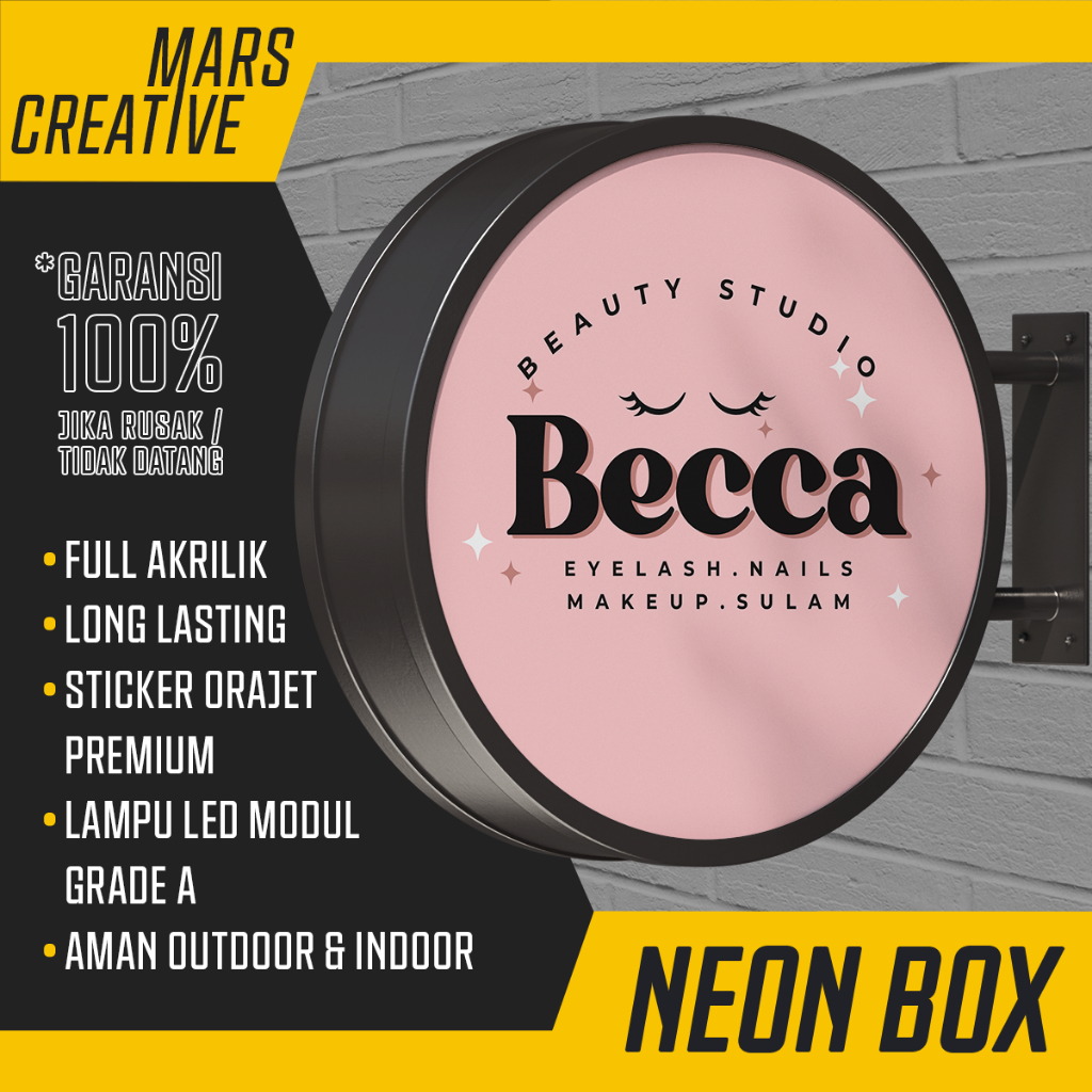 Neon Box Indoor Outdoor 120cm x 120cm Premium Custom 2 Sisi + Bracket BULAT KOTAK OVAL PERSEGI PANJANG