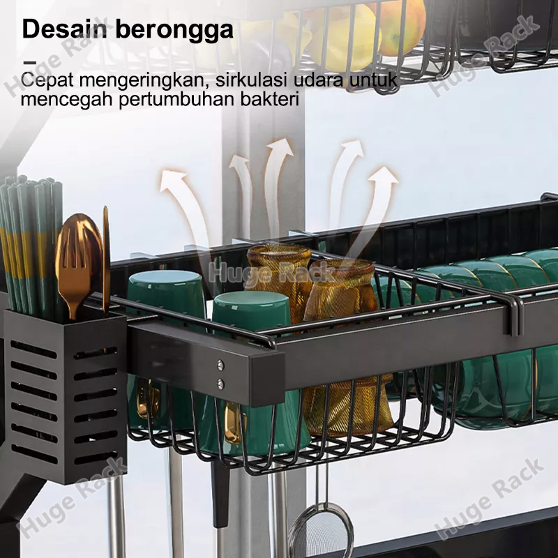 Rak Piring Wastafel Stainless steel Rak Wastafel Dapur Rak Cuci Piring Multifungsi Rak Dapur Dengan Aksesoris