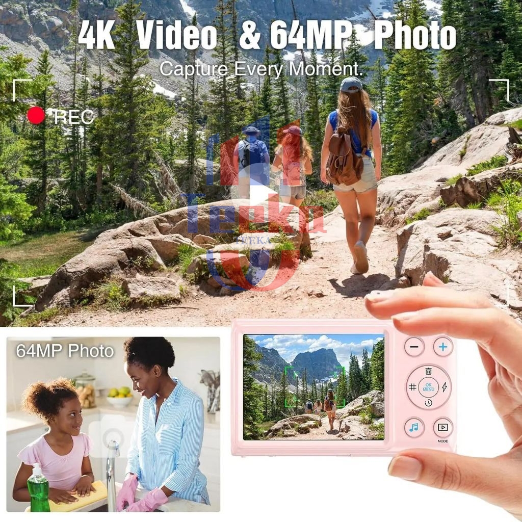 TEEKA 64MP Kamera Digital 4K Murah Dengan Zoom 18X Kamera 2.8" screen Dengan Anti Guncangan, Sempurna Untuk Vlogging, Pemula Remaja