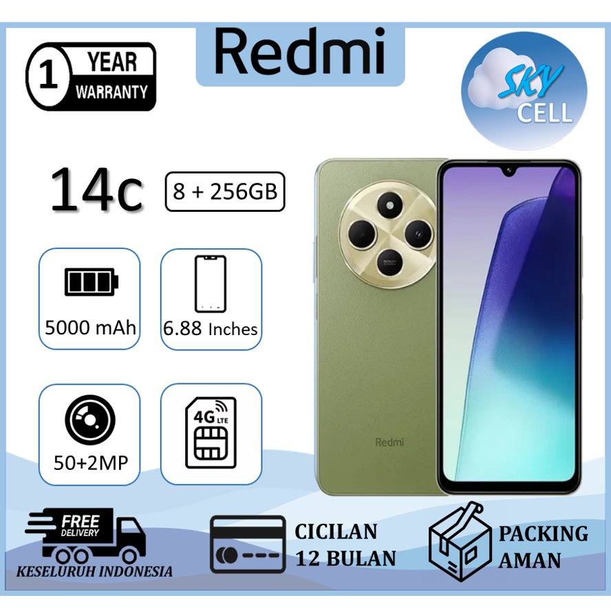BEST PROMO 8.8 SMARTPHONE REDMI 14C 8/256GB 4G FULLSET BERGARANSI 1 TAHUN
