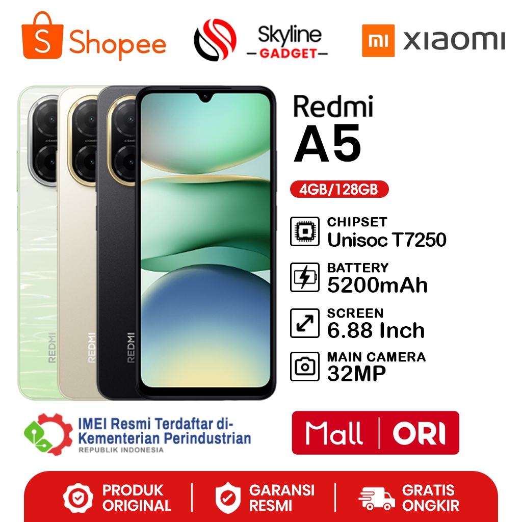 Xiaomi Redmi A5 4GB+128GB Fast Charging 15W - Garansi Resmi 1 Tahun