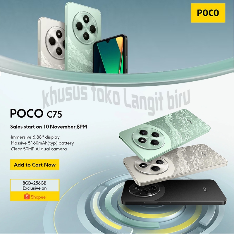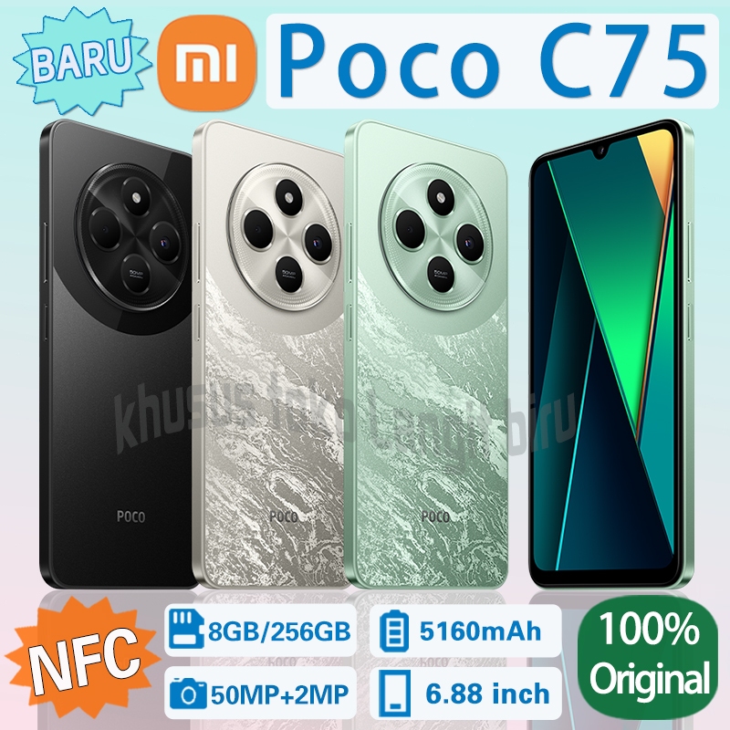 Hp Xiaomi poco c75 NFC 8/256GB Baru Original HD+ 52MP 5160mAh 6.88inch Garansi Resmi 12 Bulan
