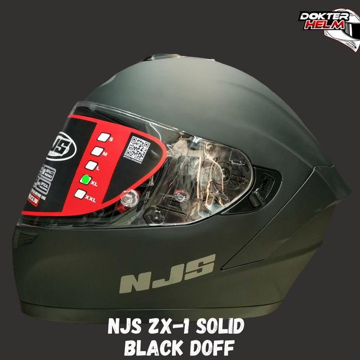 NJS ZX-1 ZX1 SOLID DOUBLE VISOR FULLFACE HELMET MURAH - BLACK GLOSSY, M