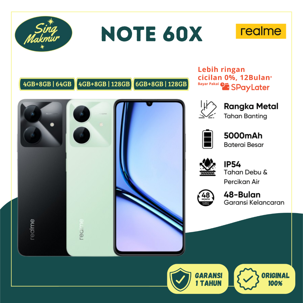 Realme Note 60x 4GB/64G 4G/128GB Baterai Besar 5000mAh Rangka Metal Tahan Banting dan Percikan Air