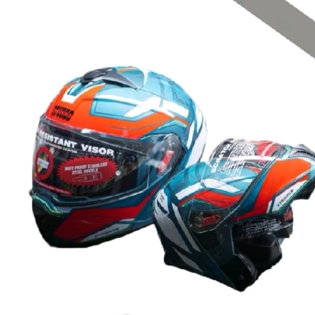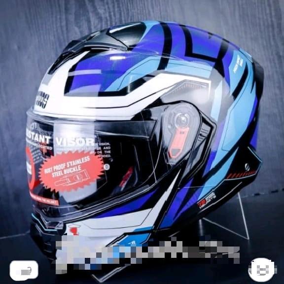 HELM FULL FACE STUDDS MOTIF MODULAR ORIGINAL | HELM FULL FACE MODULAR ORIGINAL - STUDD - GREY BLUE DOFF, M