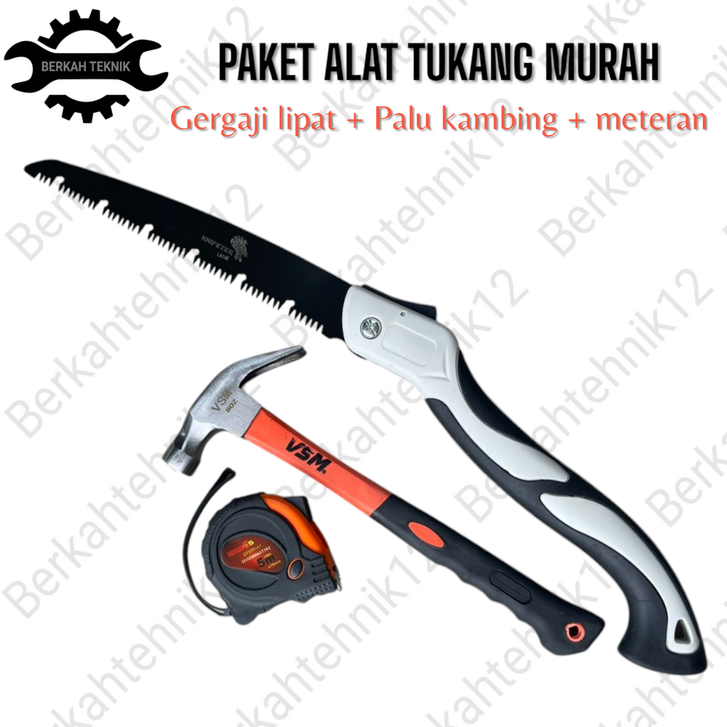 Paket Gergaji Kayu Portable + Palu Kambing 8 Oz + Meteran Karet 5 Meter