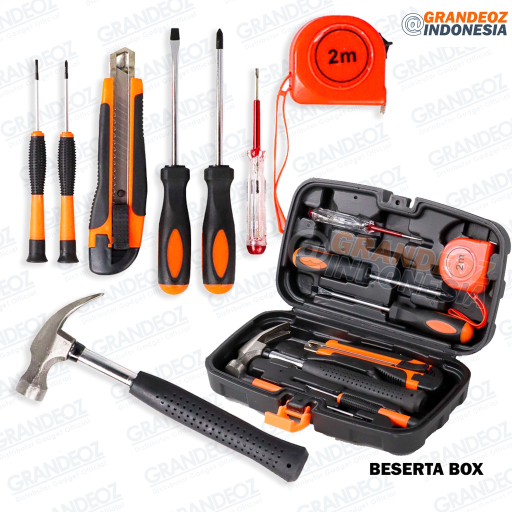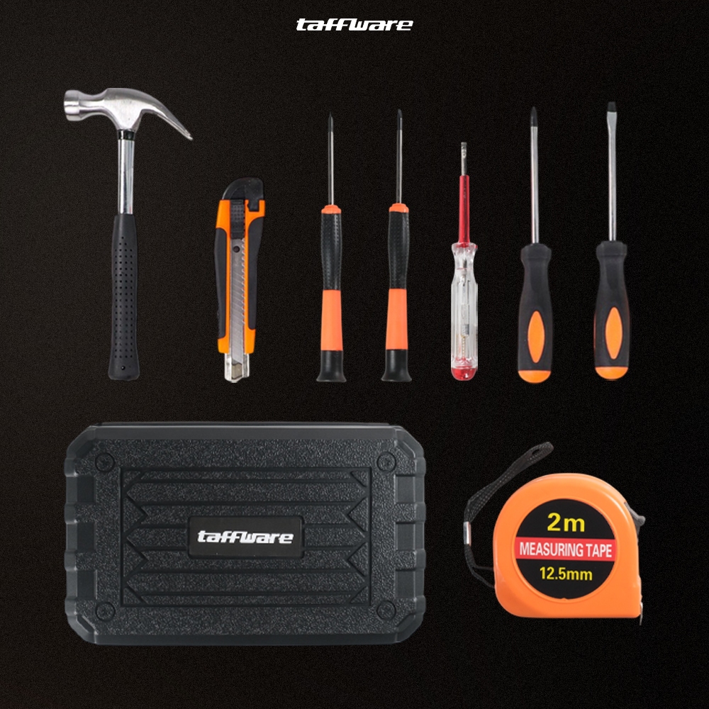 8 in 1 Alat Set Perkakas Palu Obeng Plus Minus Cutter Meteran 8in1 Taffware Alat Pertukangan Pen Tester Meteran Kunci Se