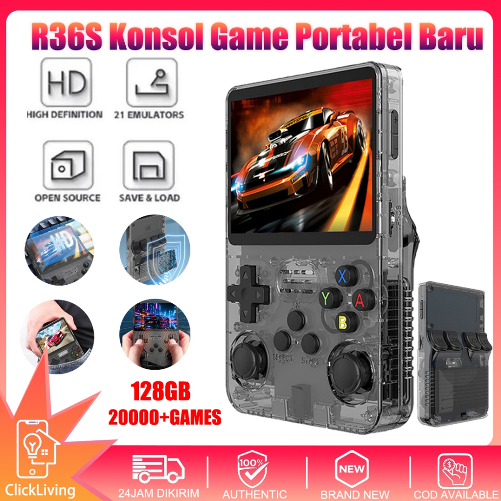 R36S Konsol Game Retro Mini Portabel Sistem Game dengan Layar 3,5 inci Kompatibel dengan konsol Game Boy, PSP, PS1, dan