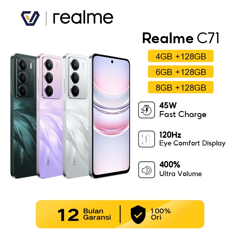 Official Realme C71 4+128GB/6+128GB/8+128GB - 45W Fast Charge 120Hz Eye Comfort Display 400 PERSEN Ultra Volume
