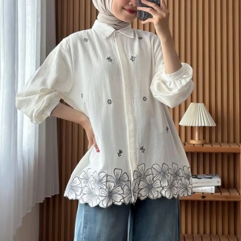 Atasan Wanita Kekinian Stevy Bordir Linen Rami Series Premium Blouse Wanita Lengan Panjang Korean Style Best Seller