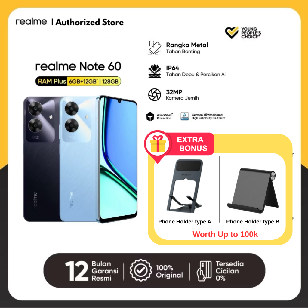 realme Note 60 6GB+12GB128GB ArmorShell™ Protection TÜV Rheinland 32MP Camera 48-month Fluency IP64 Dust & Water Resistance