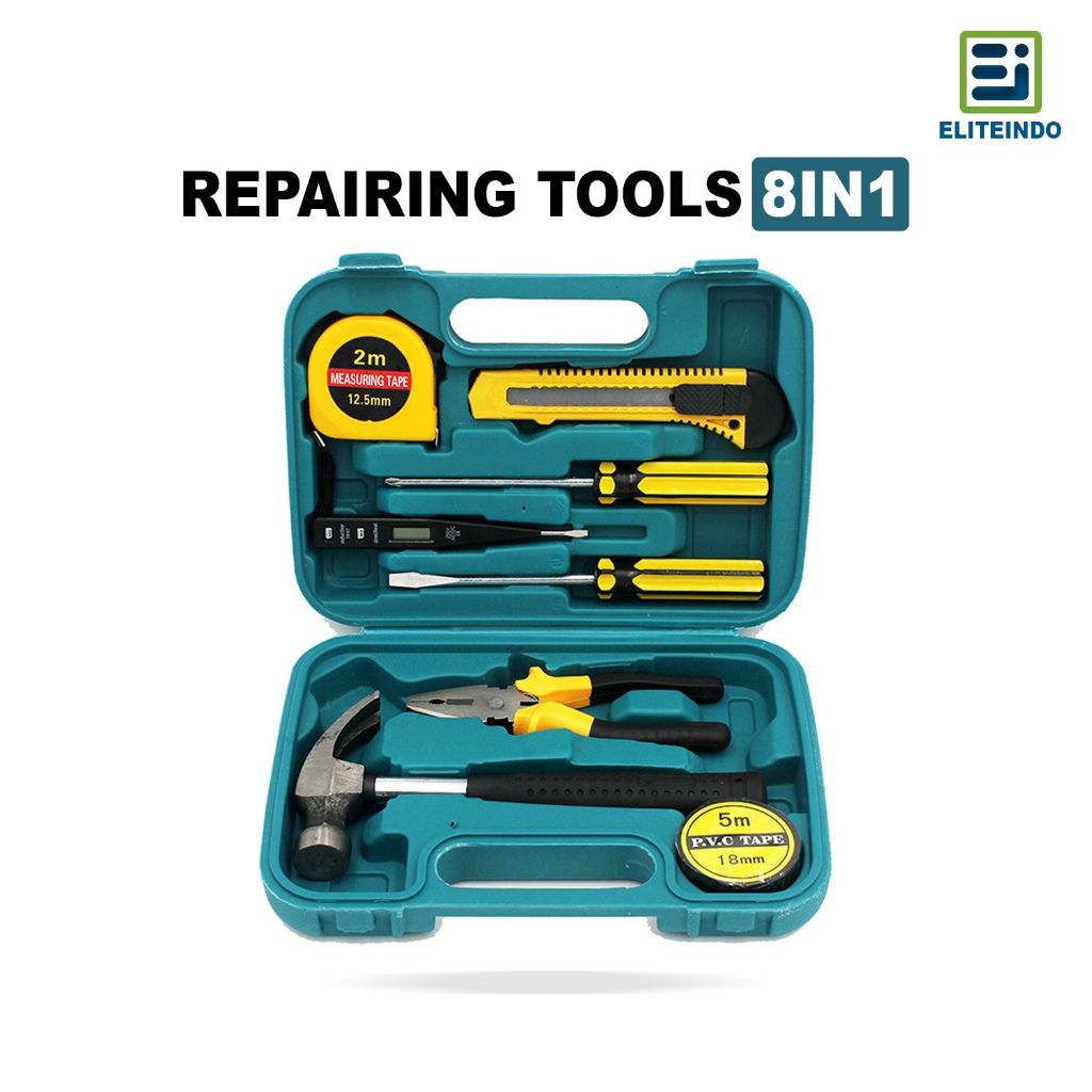 ELITEINDO Alat Perkakas Repairing Set 9 in 1 Tools Box Palu Tang Obeng Plus Kunci Pas Meteran - G1B1