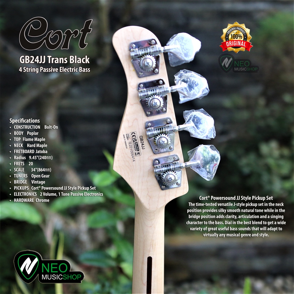 CORT GB24JJ 2 Trans Black 4 String Passive Electric Bass Original