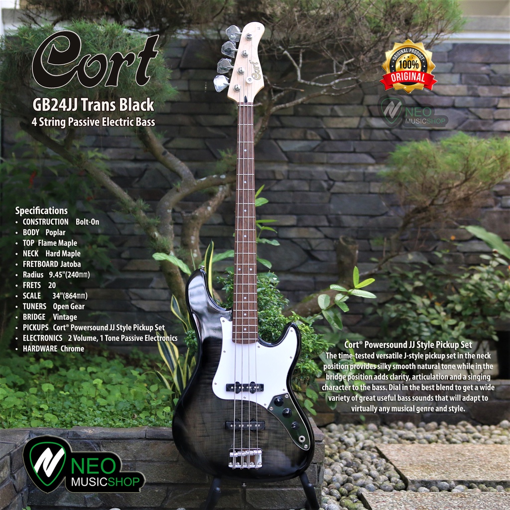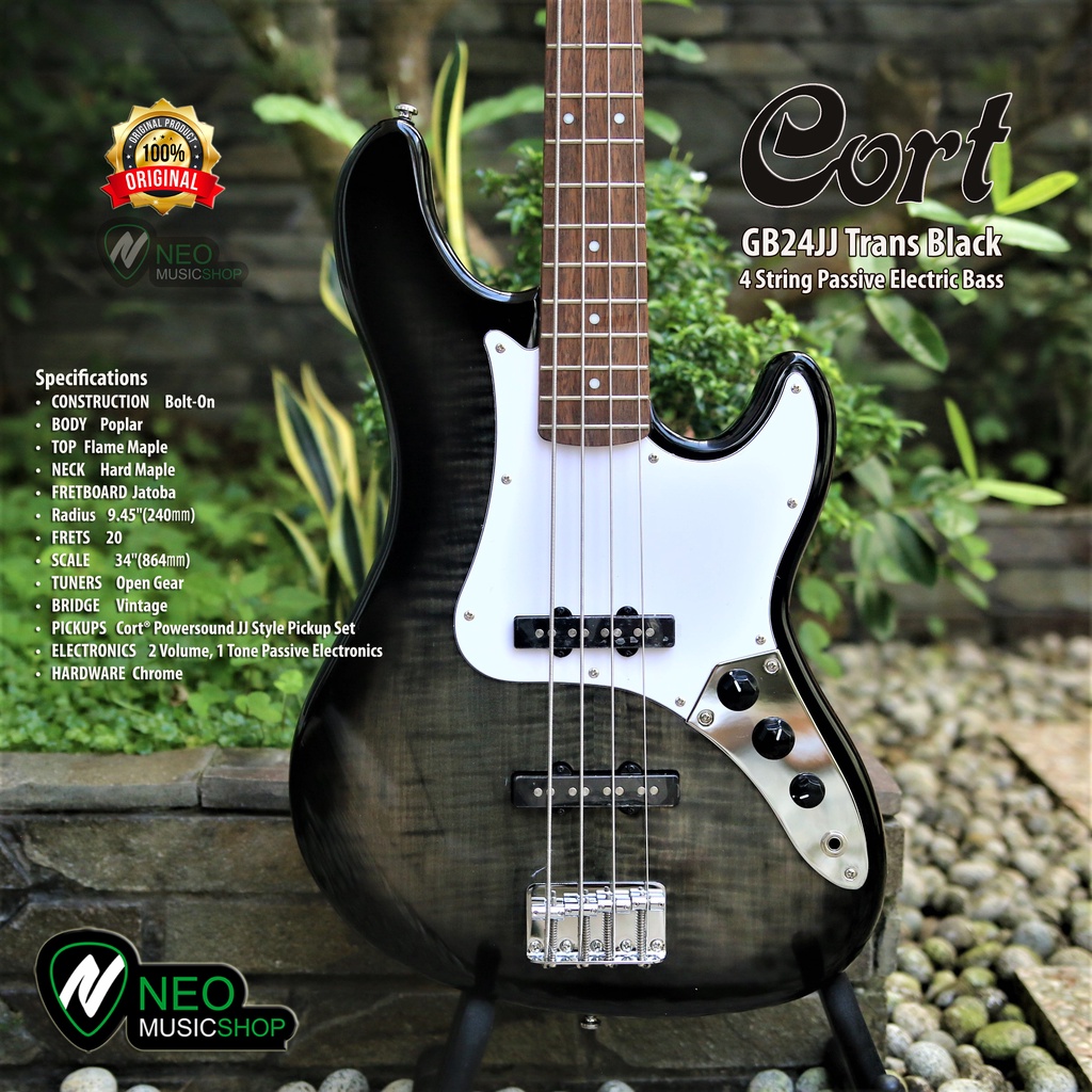 CORT GB24JJ 2 Trans Black 4 String Passive Electric Bass Original