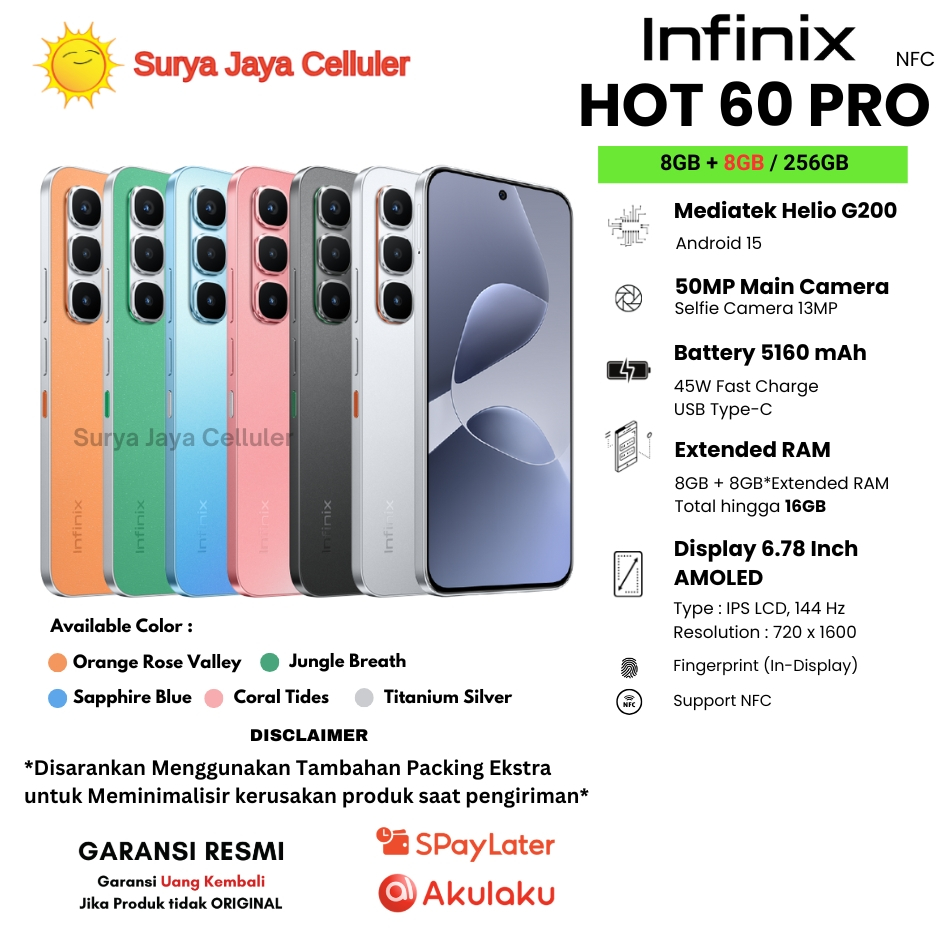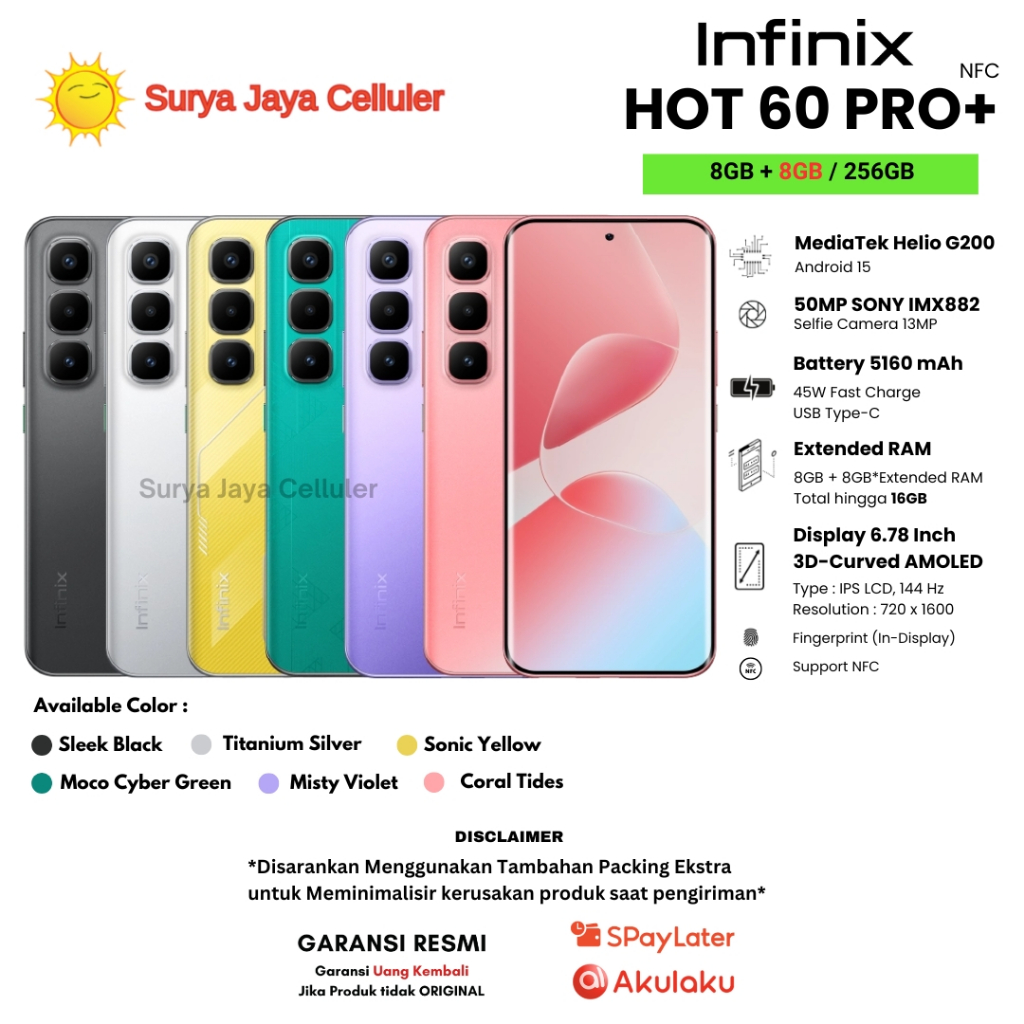 INFINIX HOT 60 PRO+ 8/256 GB, HOT 60 PRO+ 8/128 GB, HOT 60 PRO 8/256 GB,HOT 60 i 8/256 GB GARANSI RESMI