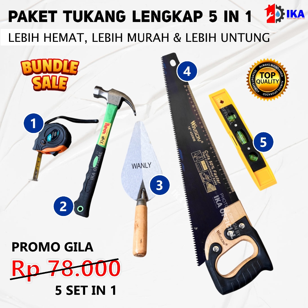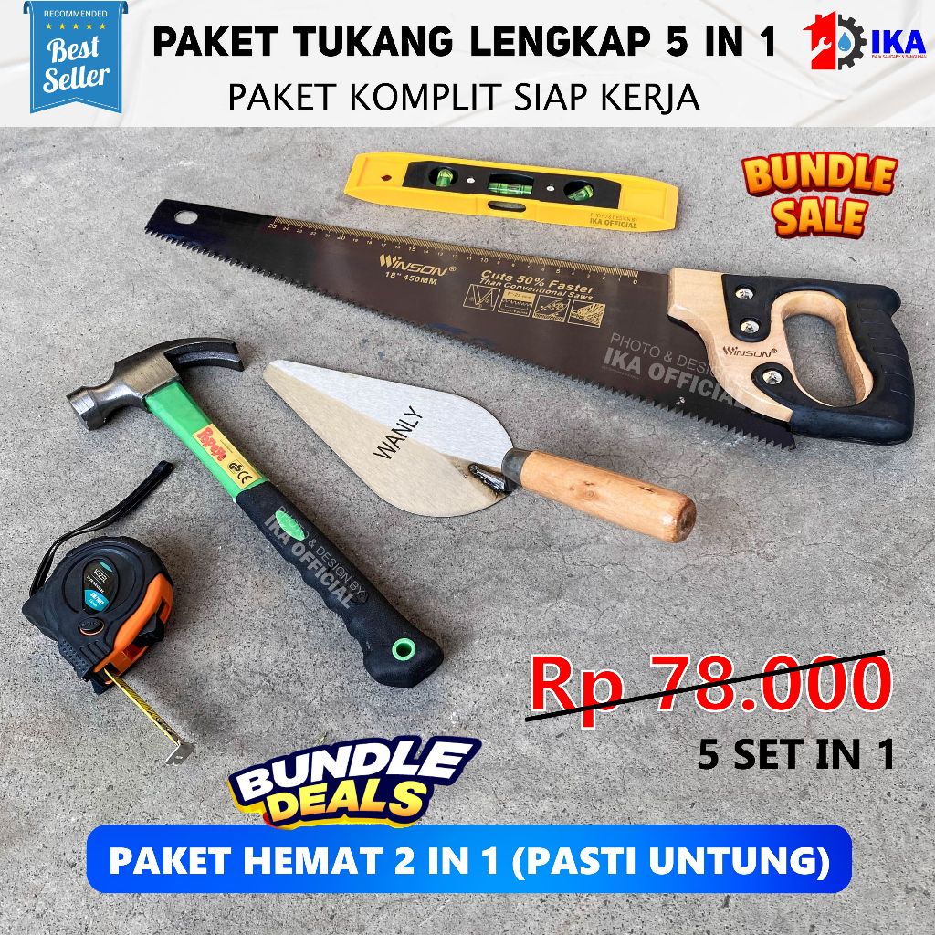 Set Paket Proyek Tukang 5 Pcs Gergaji Multifungsi Palu Meteran Sendok Semen Waterpass Tool Kit / PAKET TUKANG - Gergaji