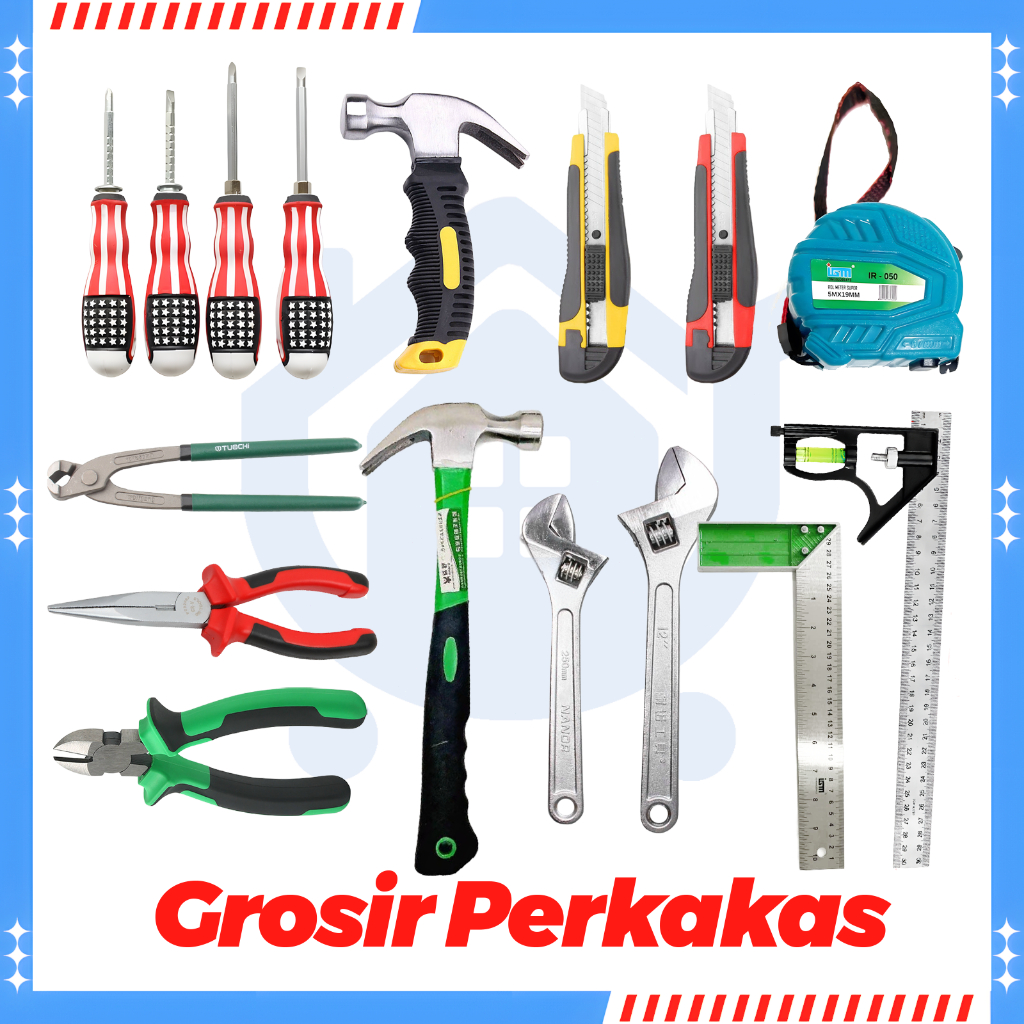 READY【Versi Upgrade NEW Stok】Set Peralatan Manual Wajib untuk Teknisi:Obeng Palu Pisau Cutter Siku tukang Catut Rol Mete