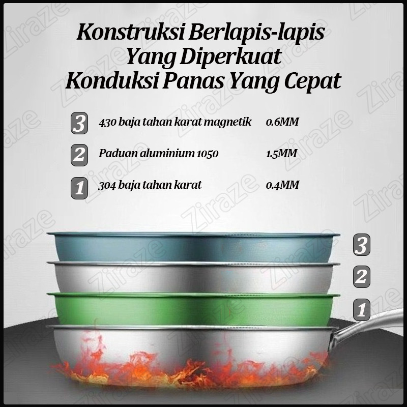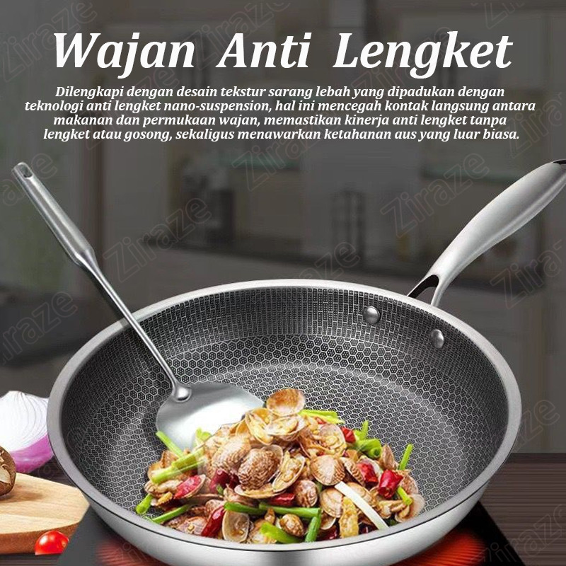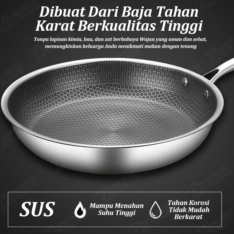 Wajan Penggorengan SUS 304 Frying Pan Honeycomb - Bahan Tebal - Best Quality - Anti Lengket