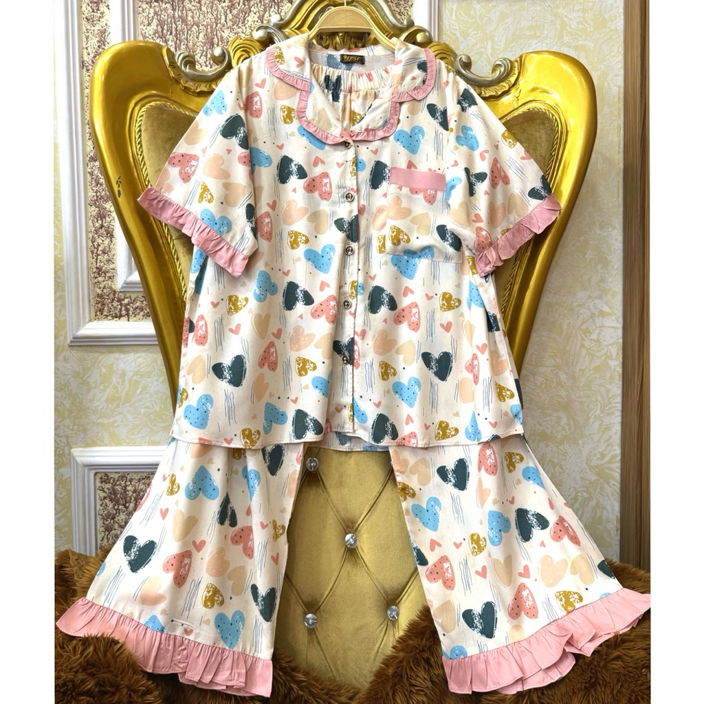 Set Lauria piyama by DST/bahan rayon jumbo adem/setelan baju tidur kekinian