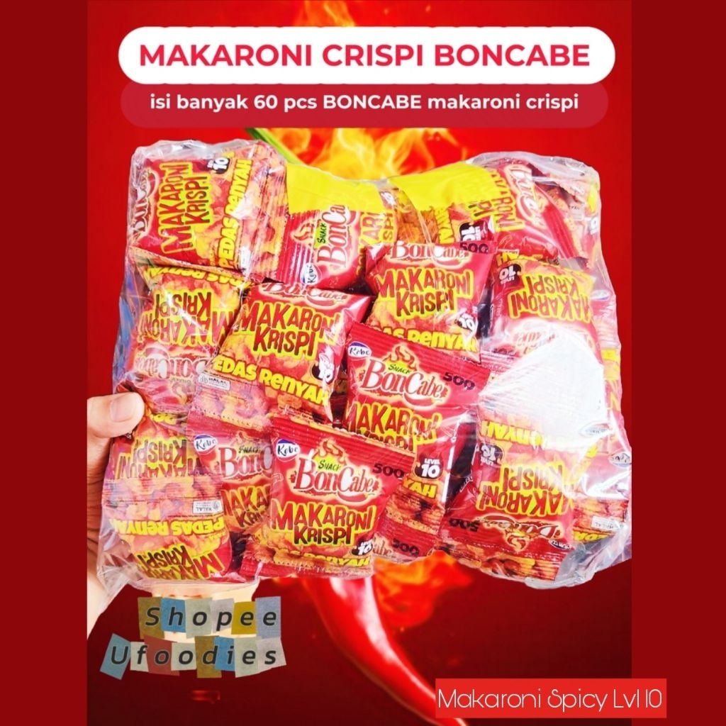 60PCS Makaroni Crispi BonCabe Level 10 – Isi 60pcs Pedas Gurih Renyah Camilan Murah