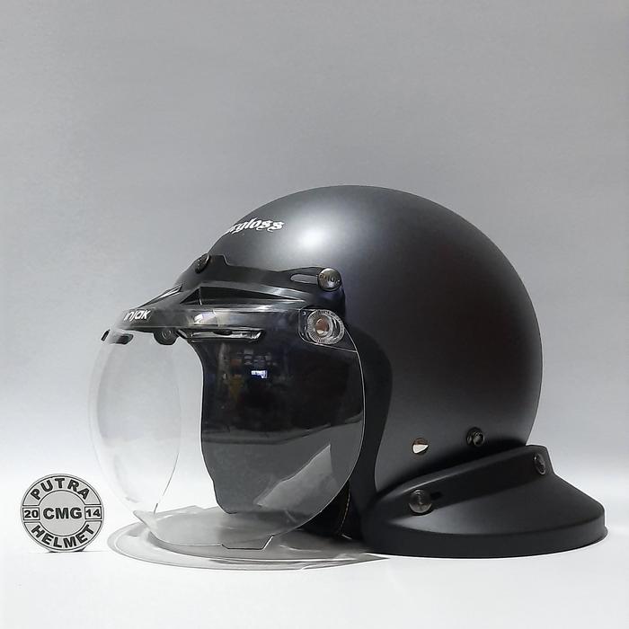PAKET HELM CARGLOSS ORIGINAL RETRO ABU DOFF KACA DATAR FLAT CEMBUNG CLASSIC - CEMBUNG BENING, M