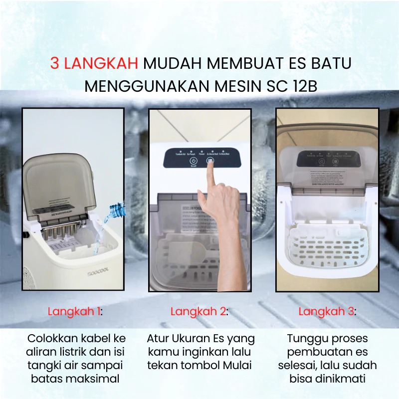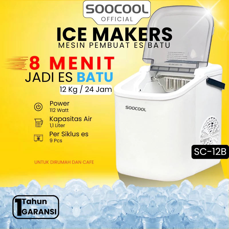 Mesin Pembuat Es Batu, Ice Maker Mini 1,1 Liter Mesin Es Batu Portable Praktis Dapur & Kantor SC-12B