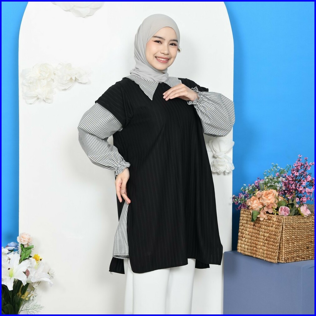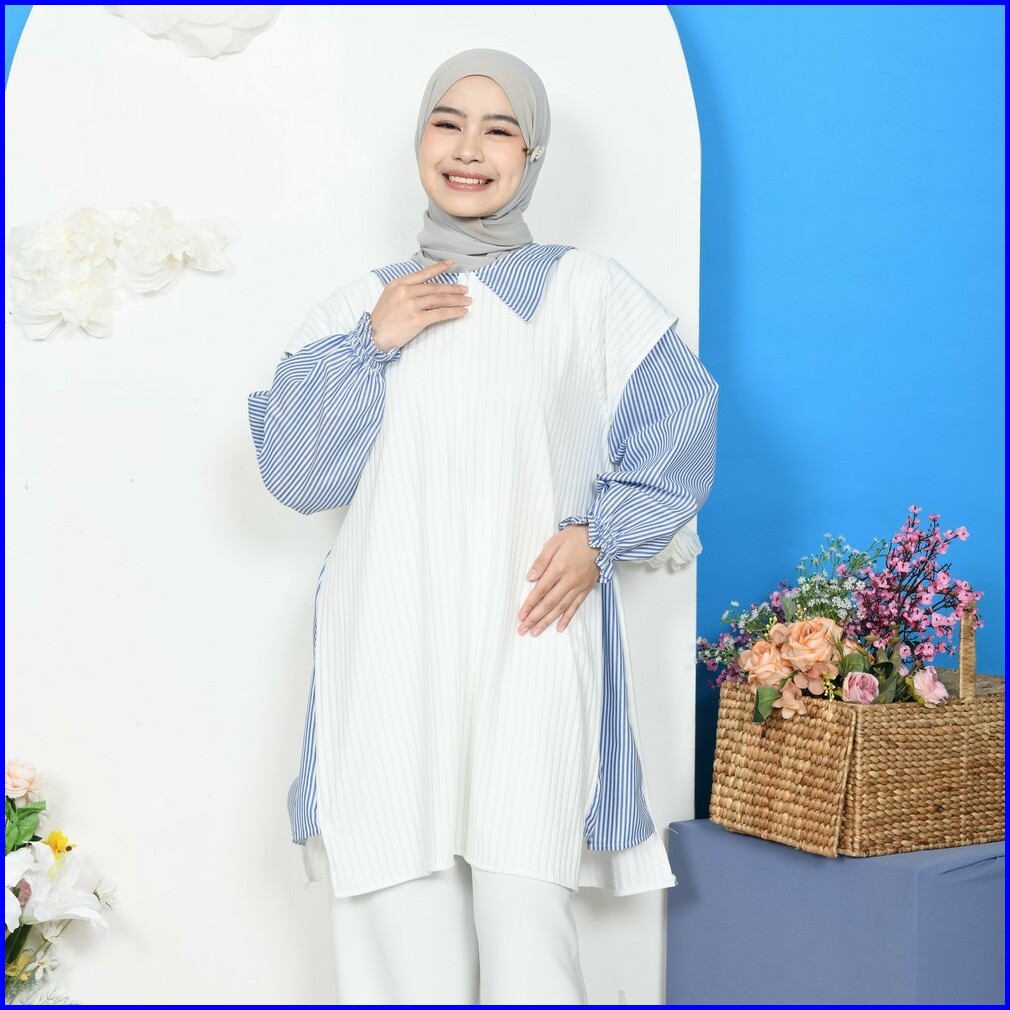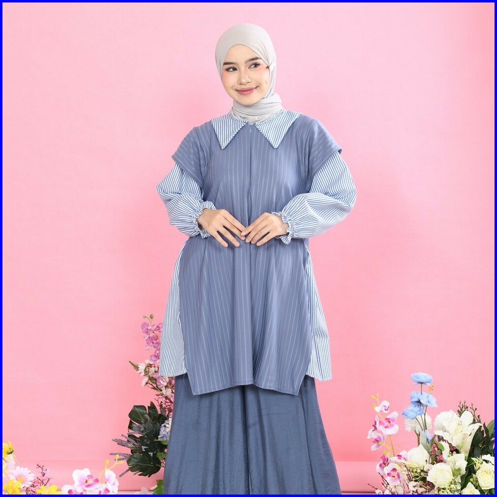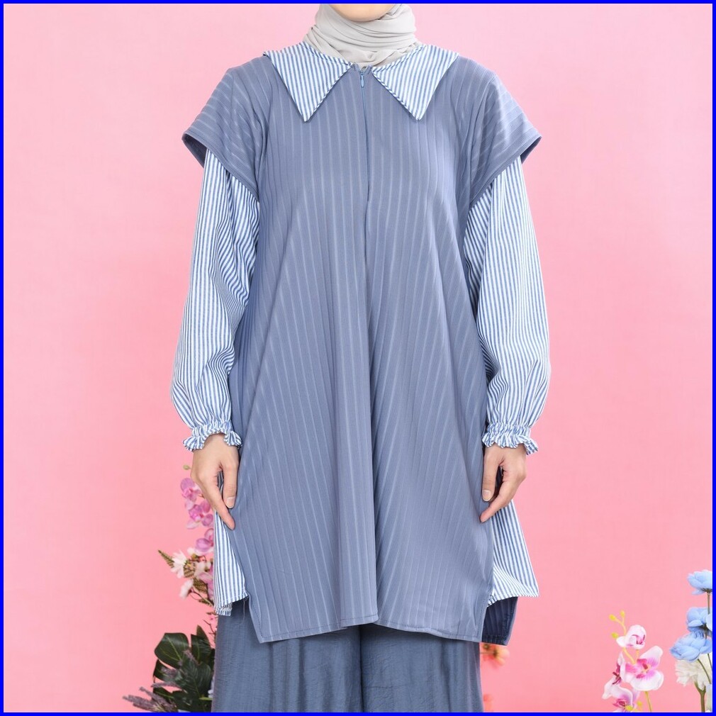 Mybamus Puspa Two In One Tunic Atasan Muslim Wanita Lengan Panjang Tunik Lebaran 2025
