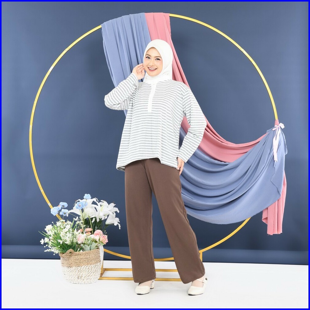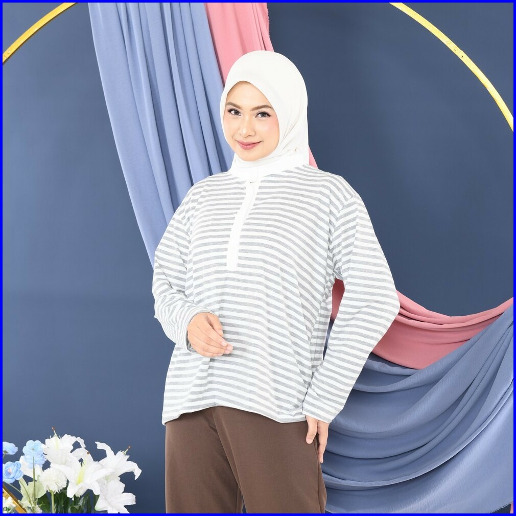 Mybamus Naka Tops Atasan Kaos Wanita Lengan Panjang Kancing
