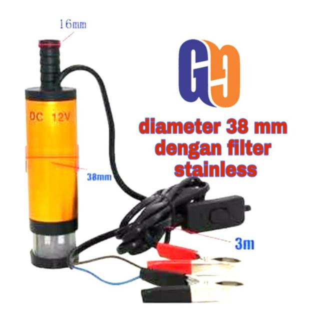 Pompa air pompa celup mini 12v dengan filter 38mm