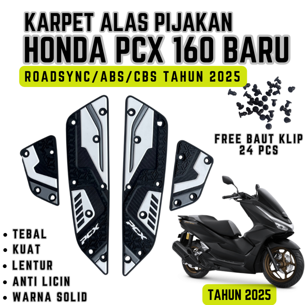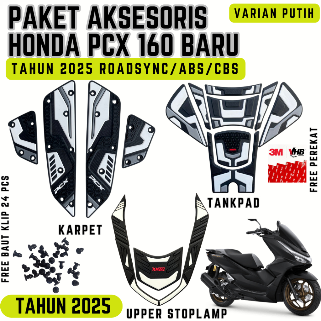 FULL SET AKSESORIS PCX 160 ROADSYNC/ABS/CBS TAHUN 2025 KARPET/TANKPAD/UPPER STOPLAMP KARET