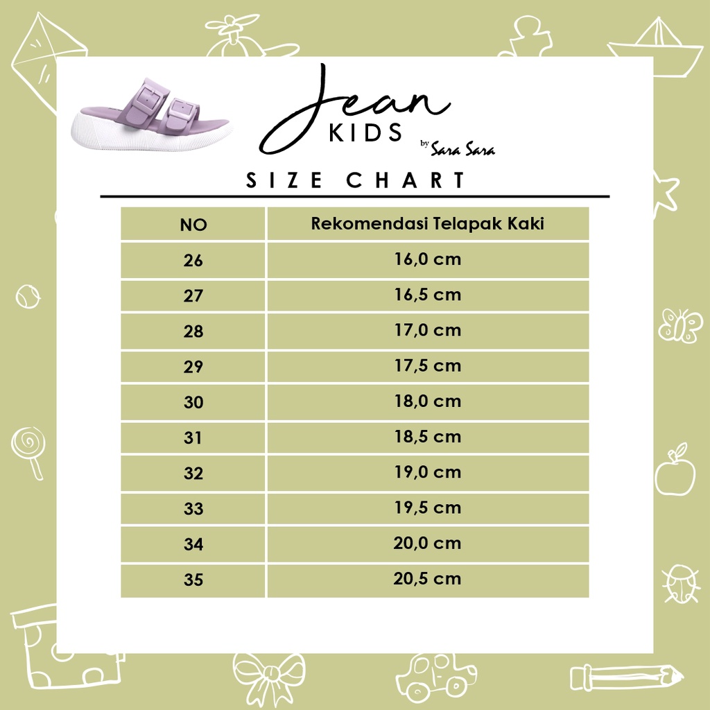 Sara Sara Jean Kids Size 26-35 Sandal Slop Anak Casual al Selop Anak Ban Dua