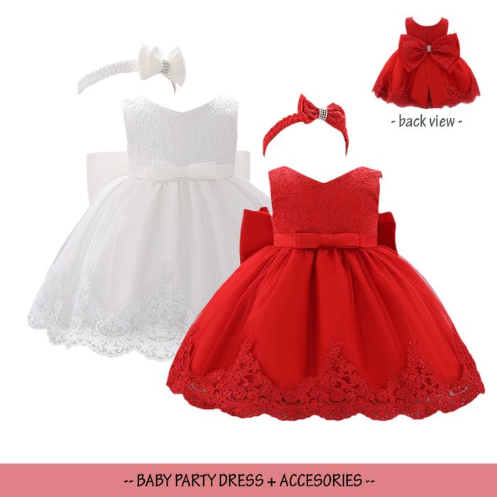 [PROMO] 3M2T DRESS PESTA BABY PEREMPUAN 3 BULAN SET MURAH MERAH POLOS 60