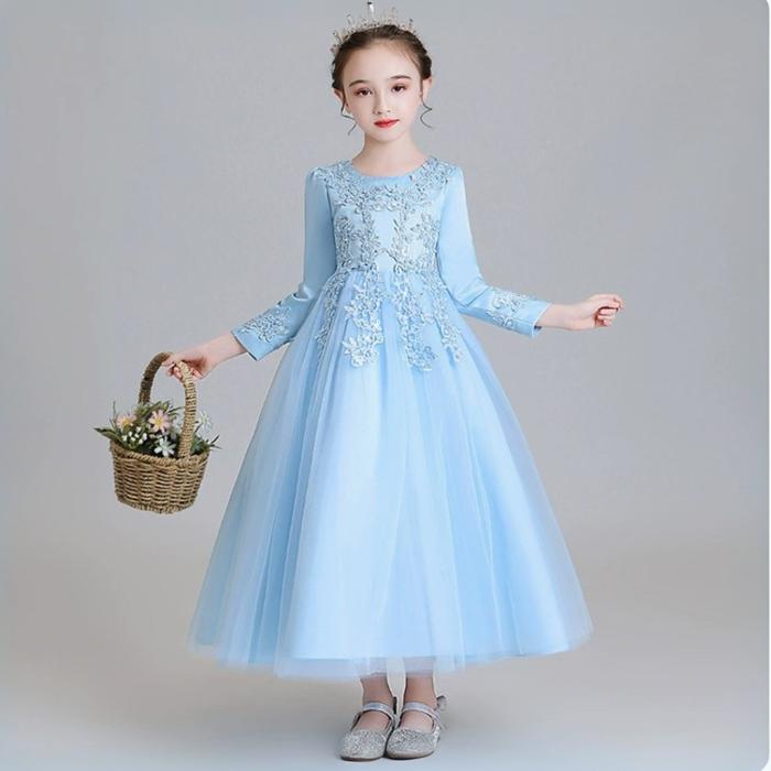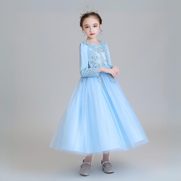 [PROMO] 5T11T LONG DRESS PESTA ANAK PEREMPUAN LENGAN PANJANG SATIN TULLE BUNGA GAUN PESTA MUSLIM ULANG TAHUN KONDANGAN EMBROIDERY PREMIUM