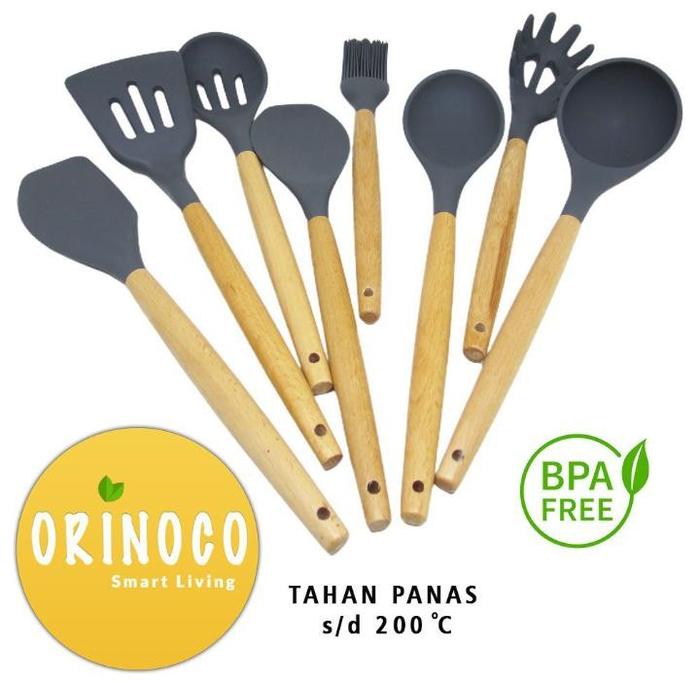 [PROMO] PERALATAN MASAK SET (9 PCS + HOLDER) SILICONE OR202 UTENSIL SET TAHAN PANAS ANTI LELEH GAGANG KAYU SENDOK MASAK SILIKON