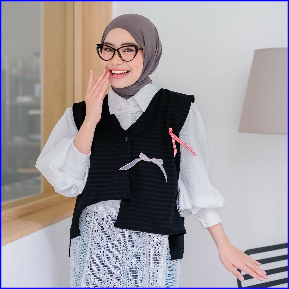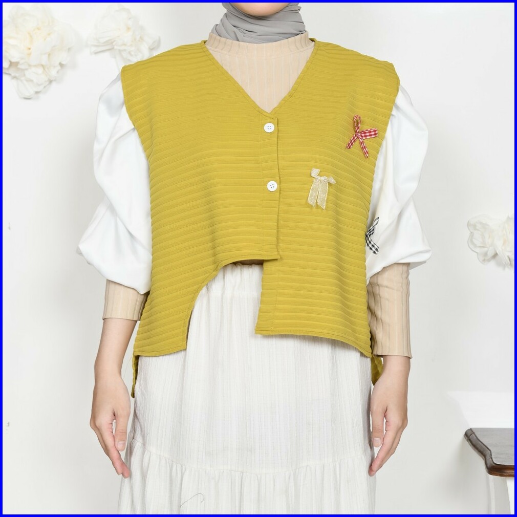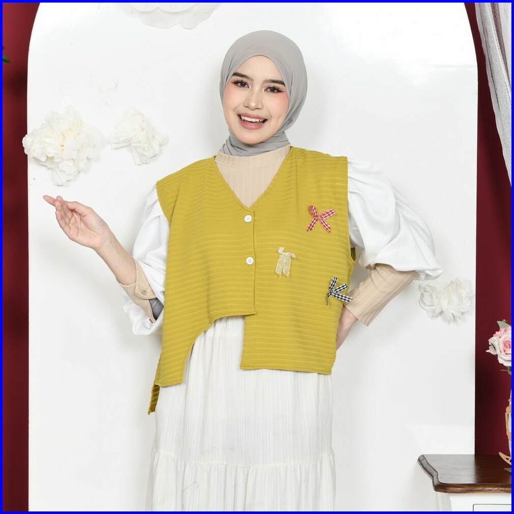 Mybamus X Purwakembar Button Vest With Ribbon Outer Rompi Wanita Kancing Coquette Ala Korea