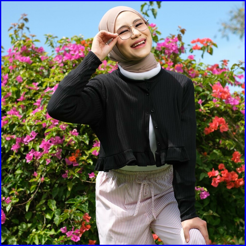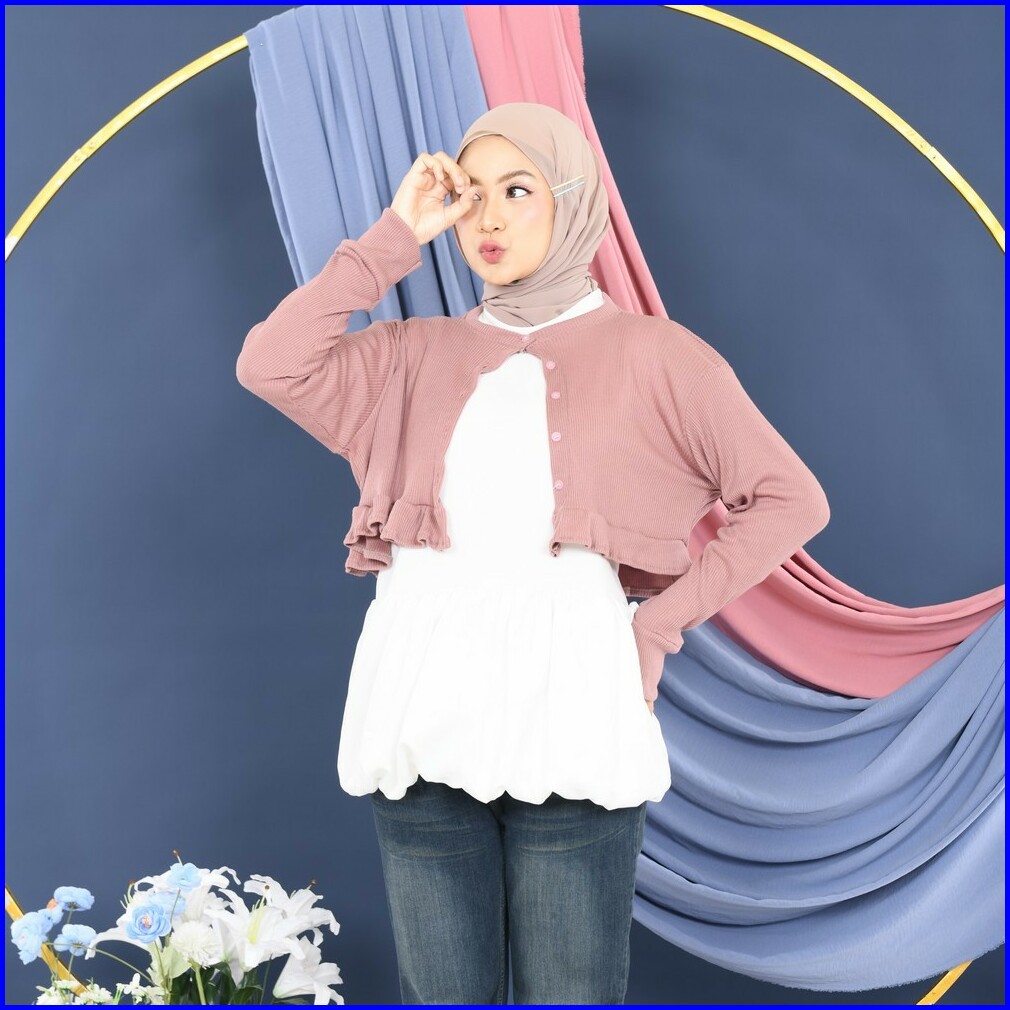 Mybamus Posie Cardigan Rib Knit Outer Wanita Cardi Korean Style Lengan Panjang Kekinian