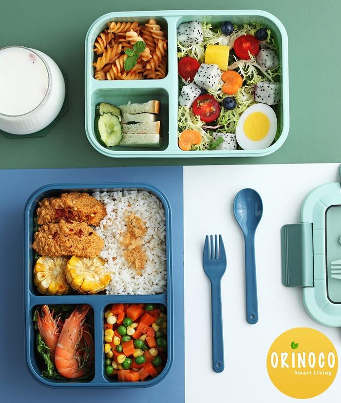 [PROMO] LUNCHBOX SET 3 SEKAT MICROWAVABLE 1500 ML ANTI TUMPAH FREE SENDOK GARPUBPA FREEOR 0224 BLUE NAVY HIJAU RED GREYKUNING