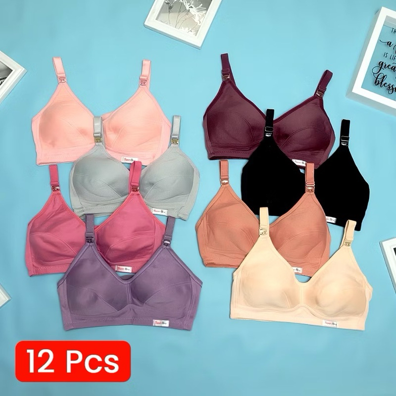12 PCS Bra BH Jumbo Wanita Sport Bra BH Sport Jumbo Tanpa Kawat Busa Tipis Bahan Full Katun