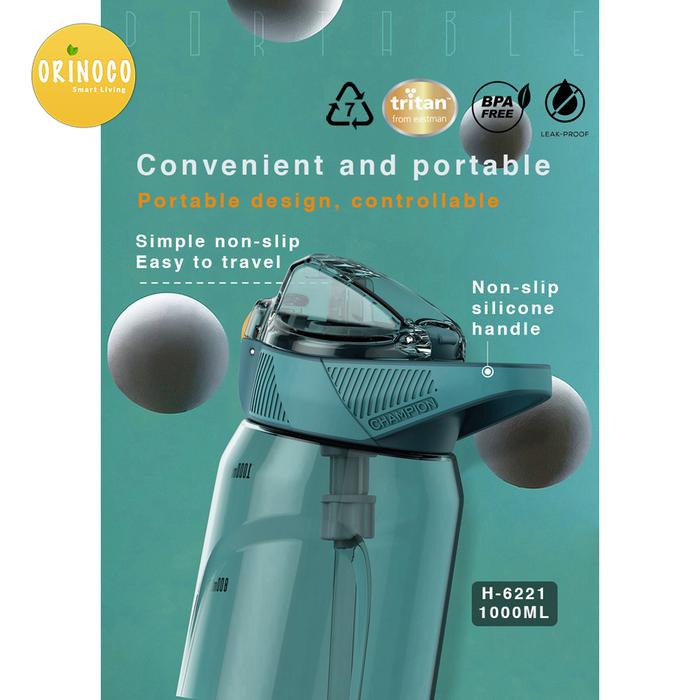 [PROMO] BOTOL MINUM 1000ML SPORT BOTTLE PLASTIK TRITAN H6221BOTOL MOTIVASI DRINK ANTI BOCOR WATER BOTTLESTURQUOISE