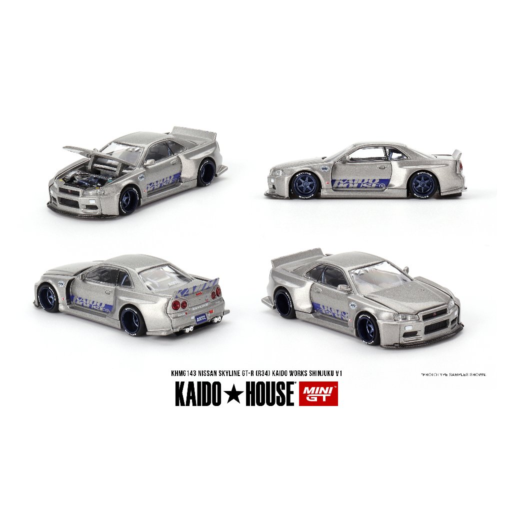 Mini GT x Kaido House KHMG 143 Nissan Skyline GT-R (R34) Kaido Works SHINJUKU V1 original