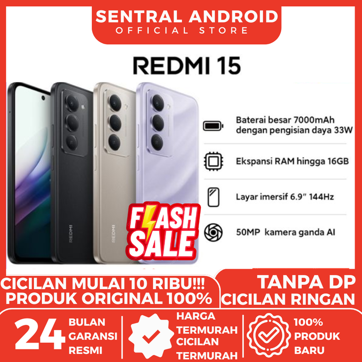 Xiaomi Redmi 15 | 8/1286GB 8/256GB | Garansi Resmi | 16GB Extended RAM | Baterai Besar 7000mAh | Sentral Android