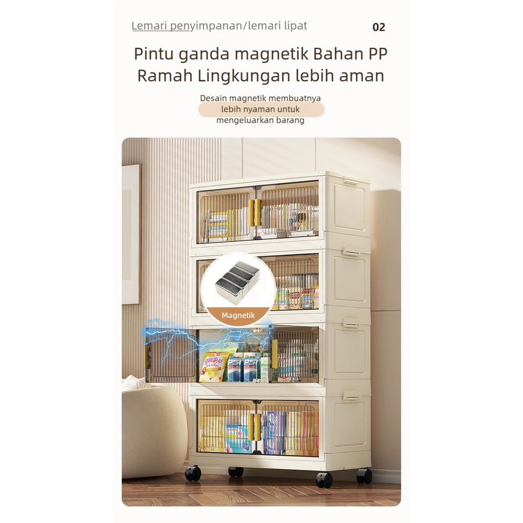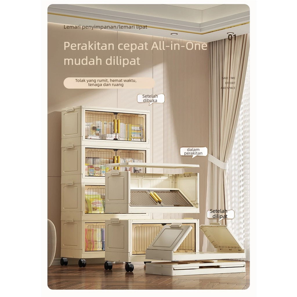 Utilooy Rak Penyimpanan Lipat 50cm Lemari Plastik Multifungsi Tanpa Perakitan untuk Mainan, Baju & Snack Anak Wardrobe S