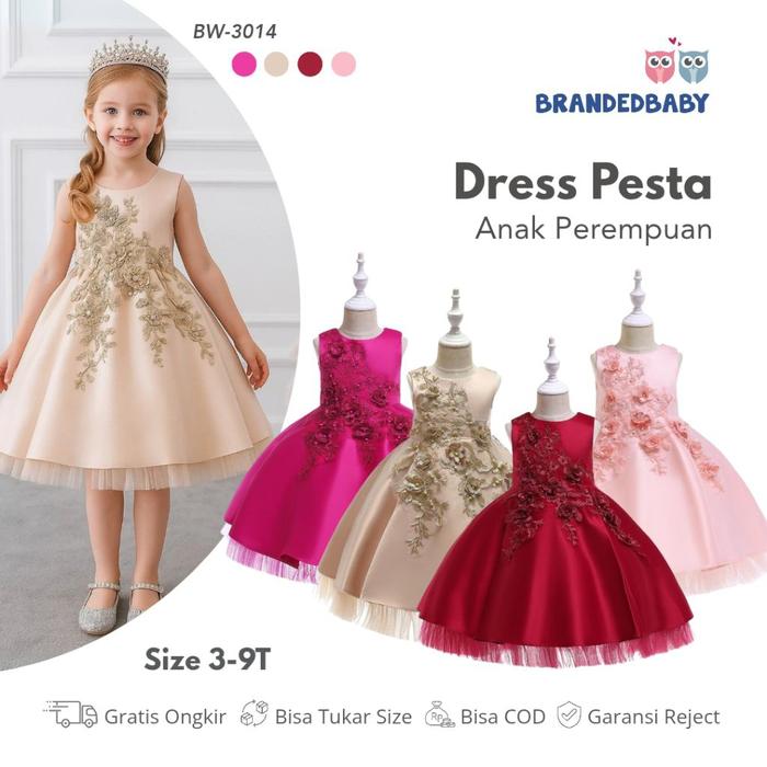 [PROMO] 3T8T DRESS PESTA ANAK PEREMPUAN IMPORT PREMIUM TUTU SATIN MEWAH ELEGANT BORDIR BUNGA FASHION CRED SIZE 120