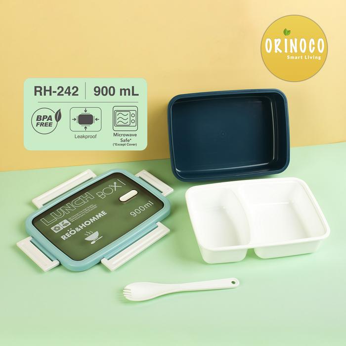 [PROMO] KOTAK MAKAN 2 SEKAT RH242 ANTI TUMPAH 900 ML FREE SENDOK BPA FREE DENGAN 2 KOMPARTEMENBLUE