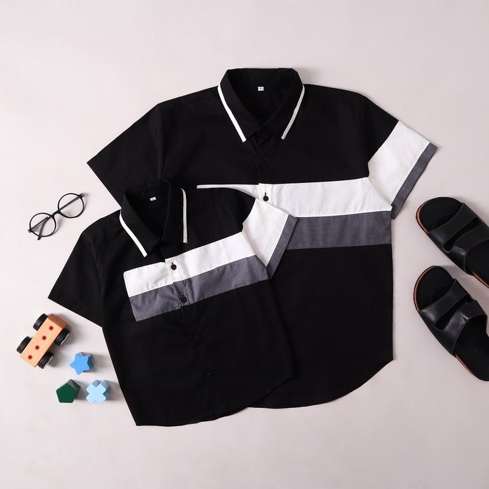 [PROMO] KEMEJA COUPLE AYAH DAN ANAK PASANGAN KELUARGA KATUN MOTIF BAJU PANJANG HITAM BIRU ABIRU SIZE 3