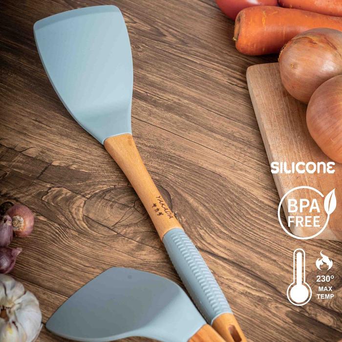 [PROMO] ALAT MASAK DOUBLE SILICONE Y203 GAGANG KAYU TAHAN PANAS BPA FREE FOOD GRADEKITCHEN UTENSILS ANTI LELEH DUA LAPIS SILIKONWARNA GREYA SLOTTED